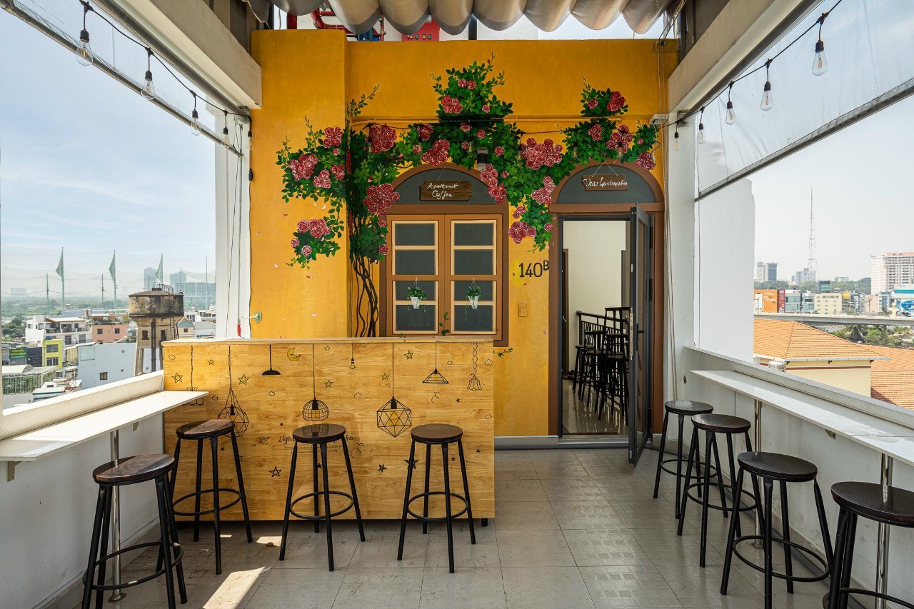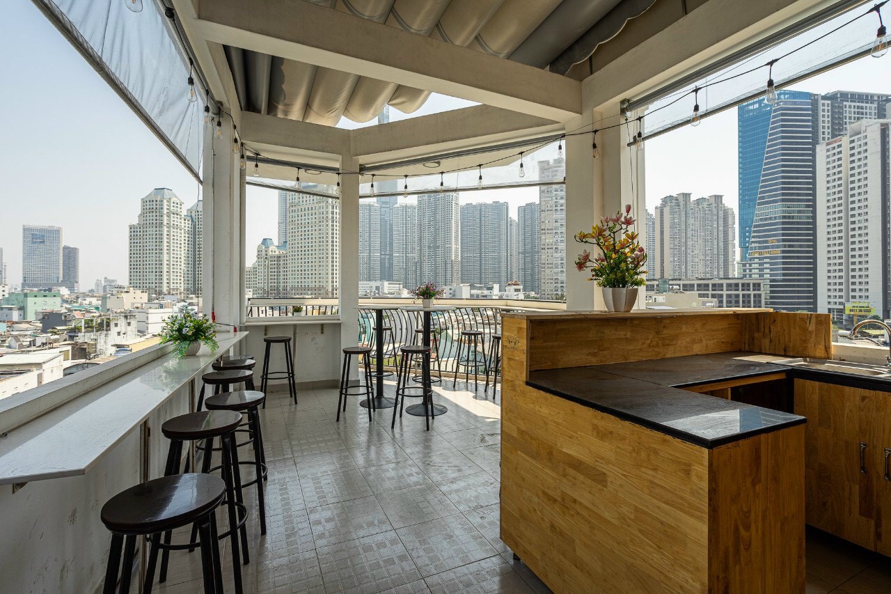 The terrace is designed with a very beautiful coffee model to chill.
