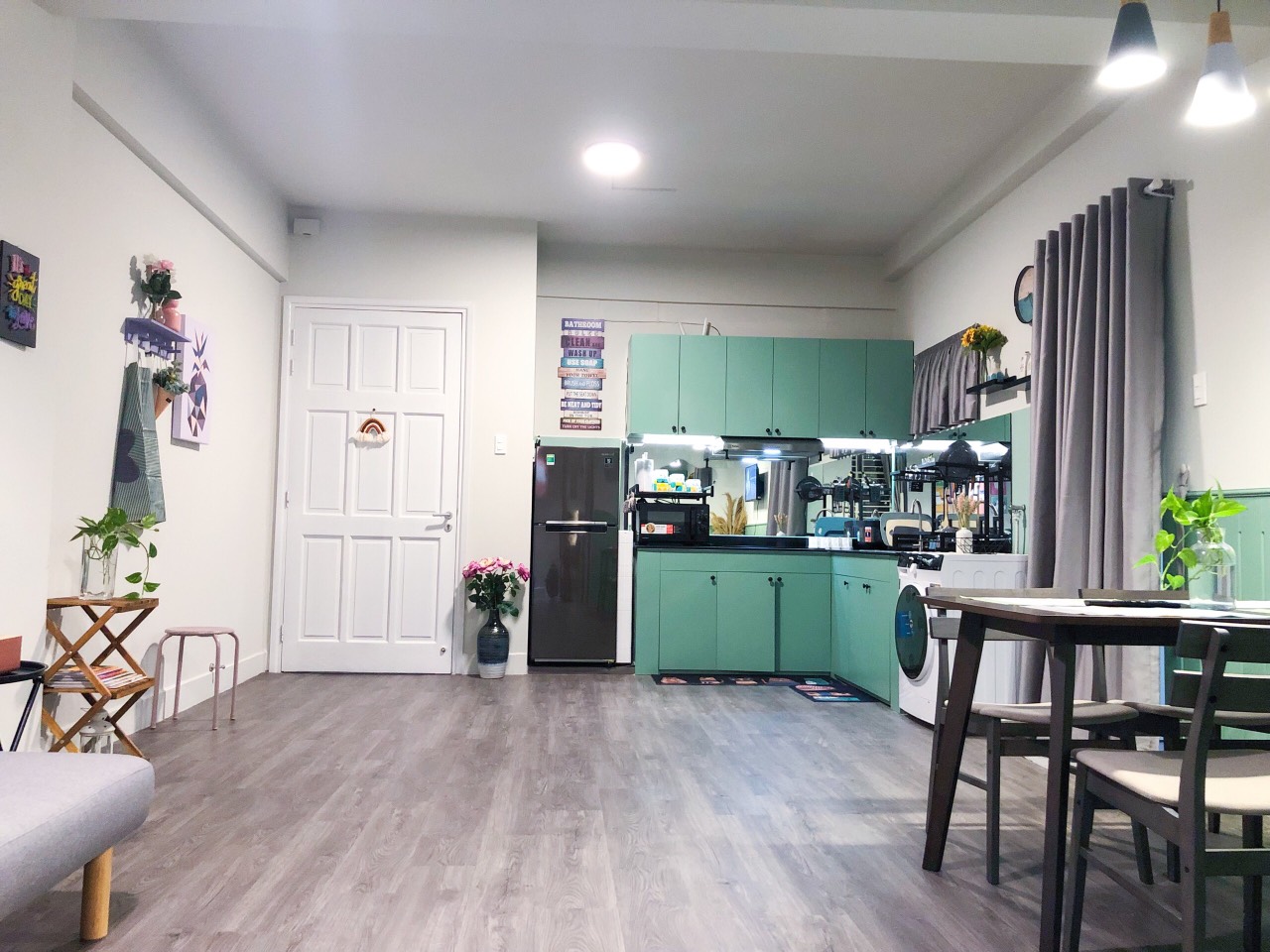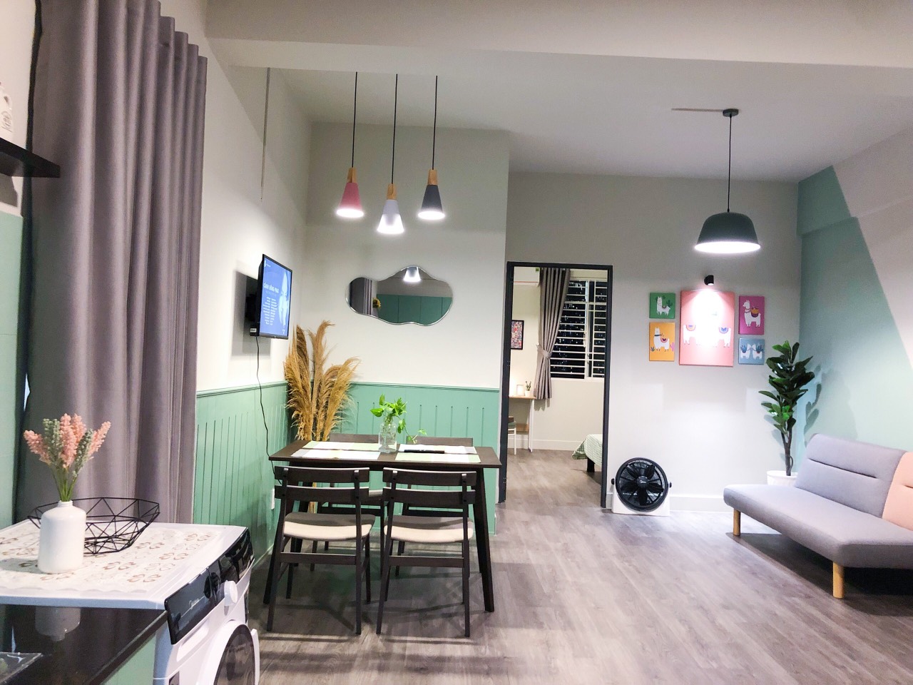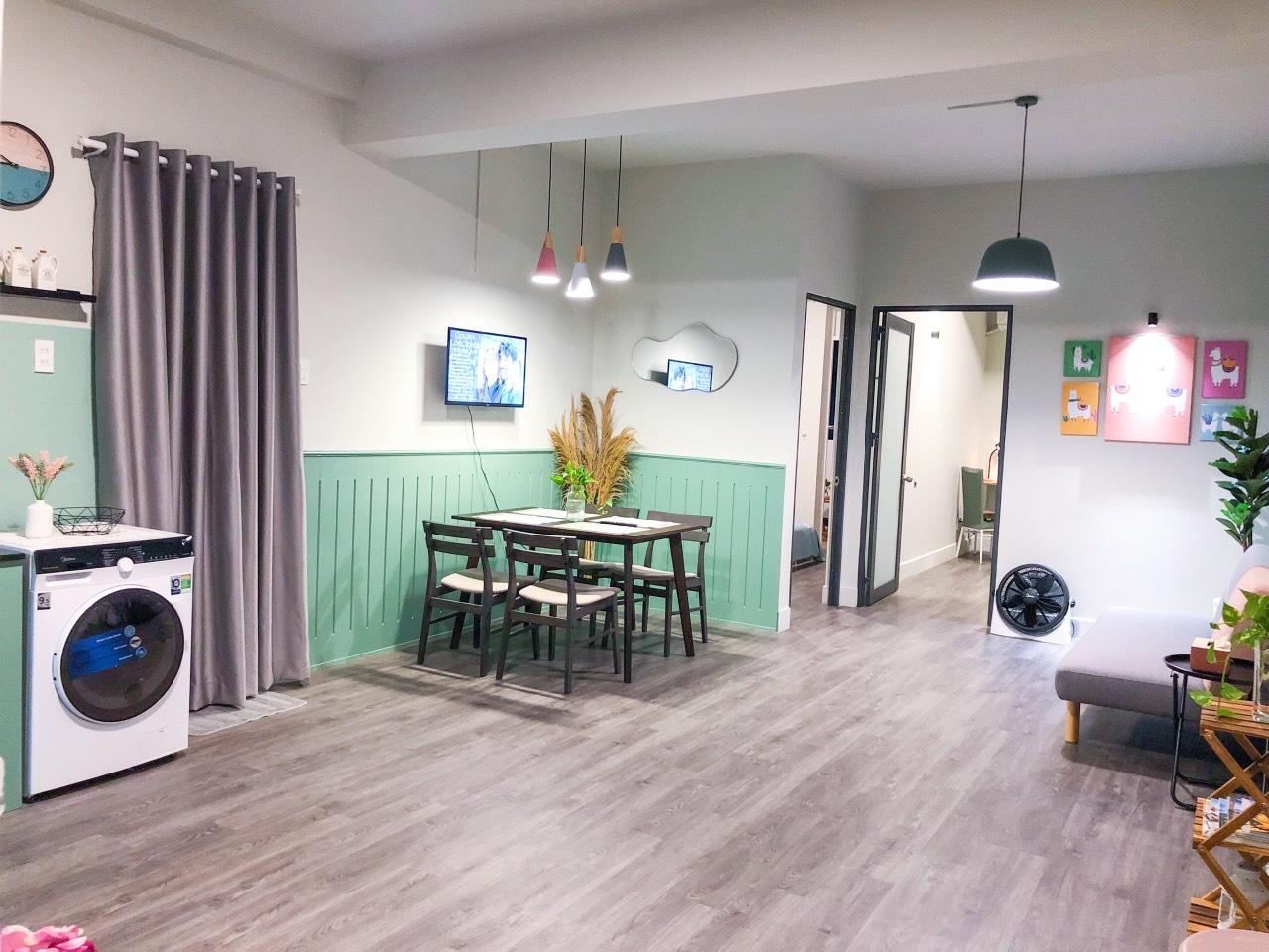 * New house, newly renovated, cozy, full furniture: 3 air conditioners, 2 water heaters, TV, refrigerator, washing machine, gas stove, smoke machine, bar, kitchen cabinet, sofa, set dining table, bed, wardrobe...