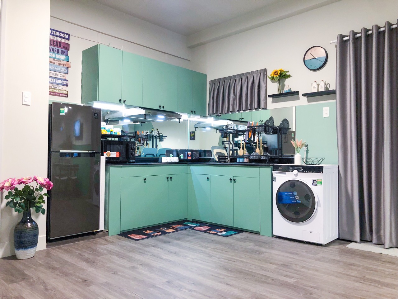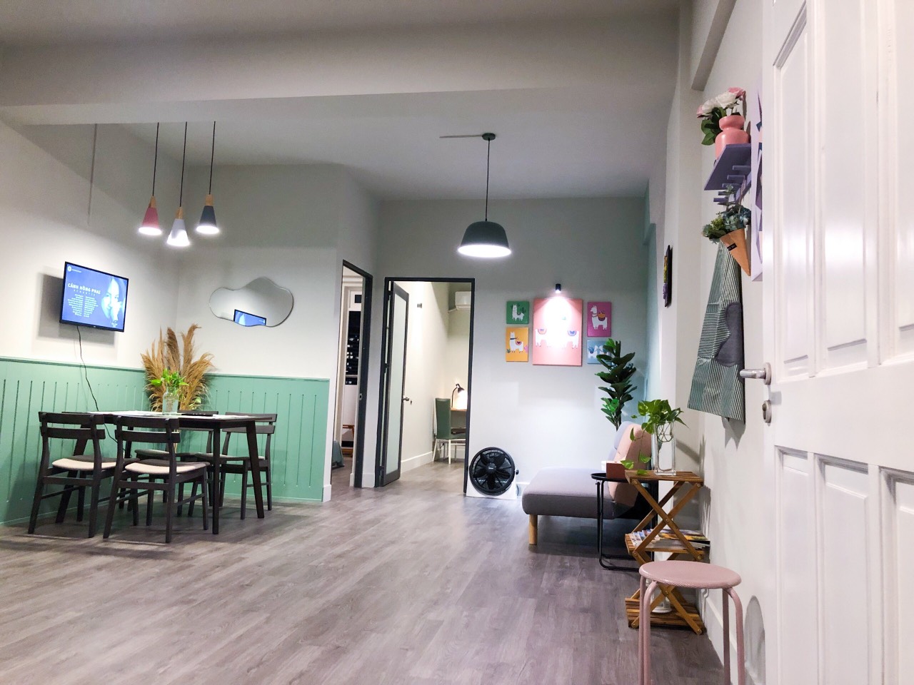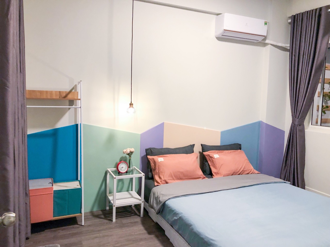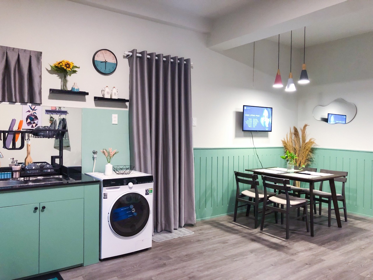 * New house, newly renovated, cozy, full furniture: 3 air conditioners, 2 water heaters, TV, refrigerator, washing machine, gas stove, smoke machine, bar, kitchen cabinet, sofa, set dining table, bed, wardrobe...