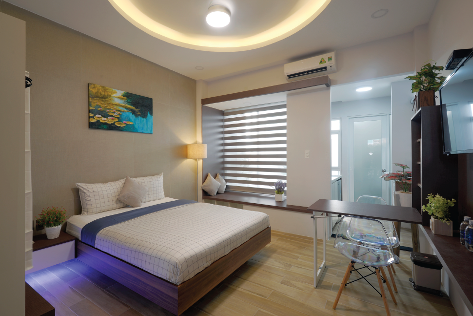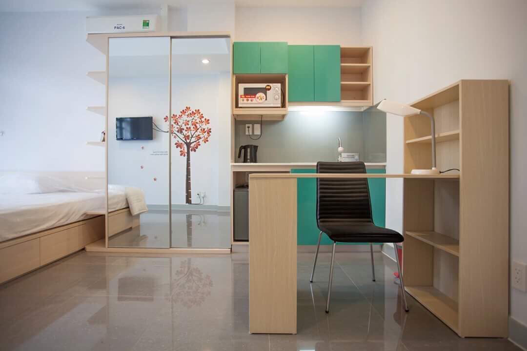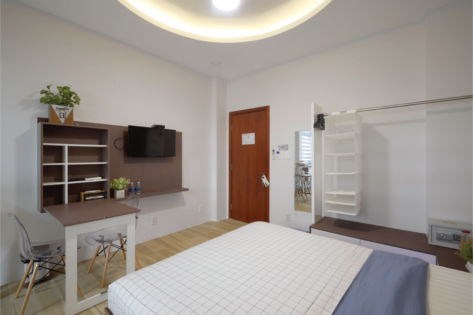 Rental price: 12 million per month including usage of water, wifi, cable TV, cleaning room and laundry 2 times a week, change bedsheets once a week, security 24/7, motor parking, no curfew. Electricity 4000 VND/kWh