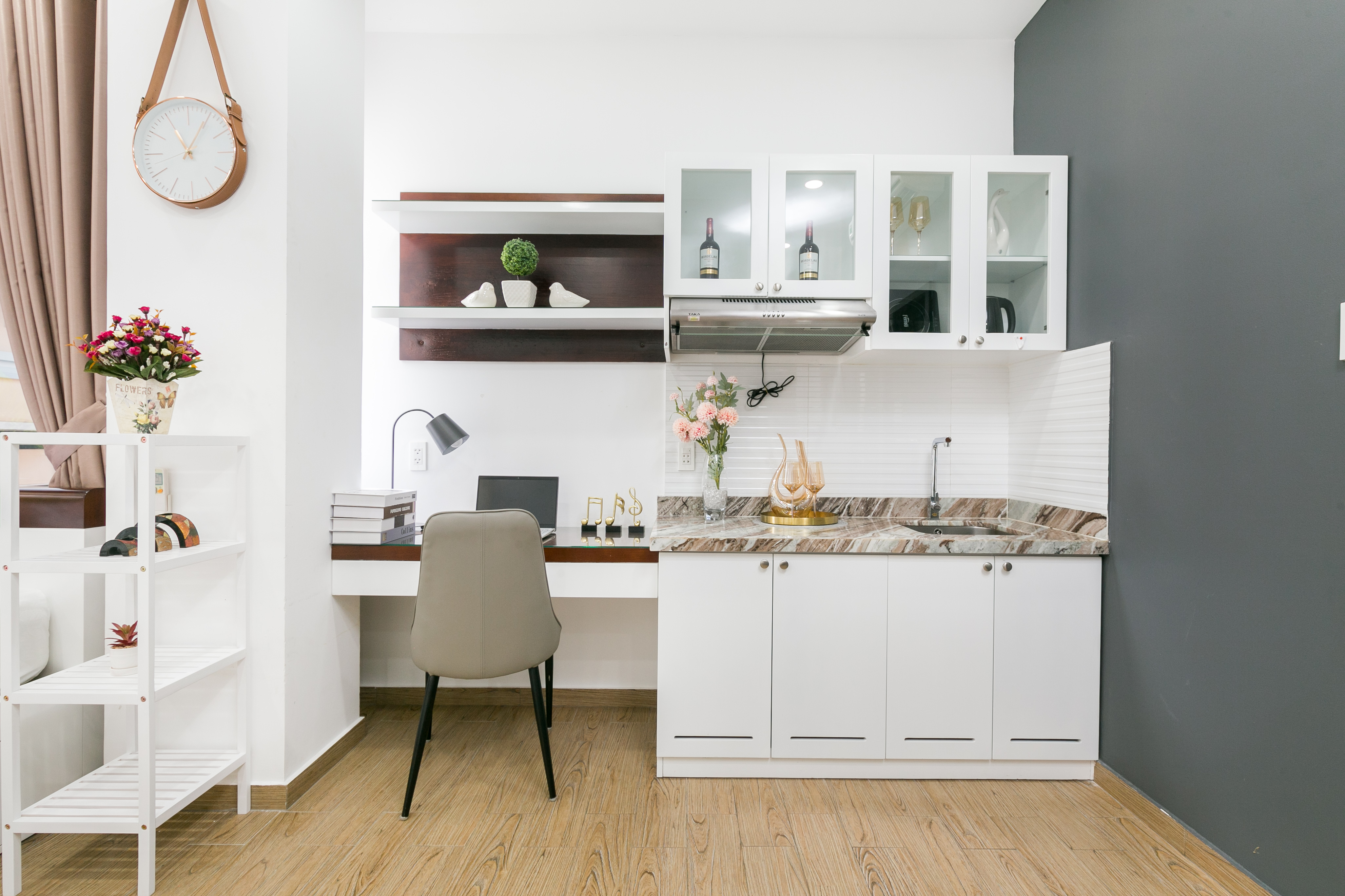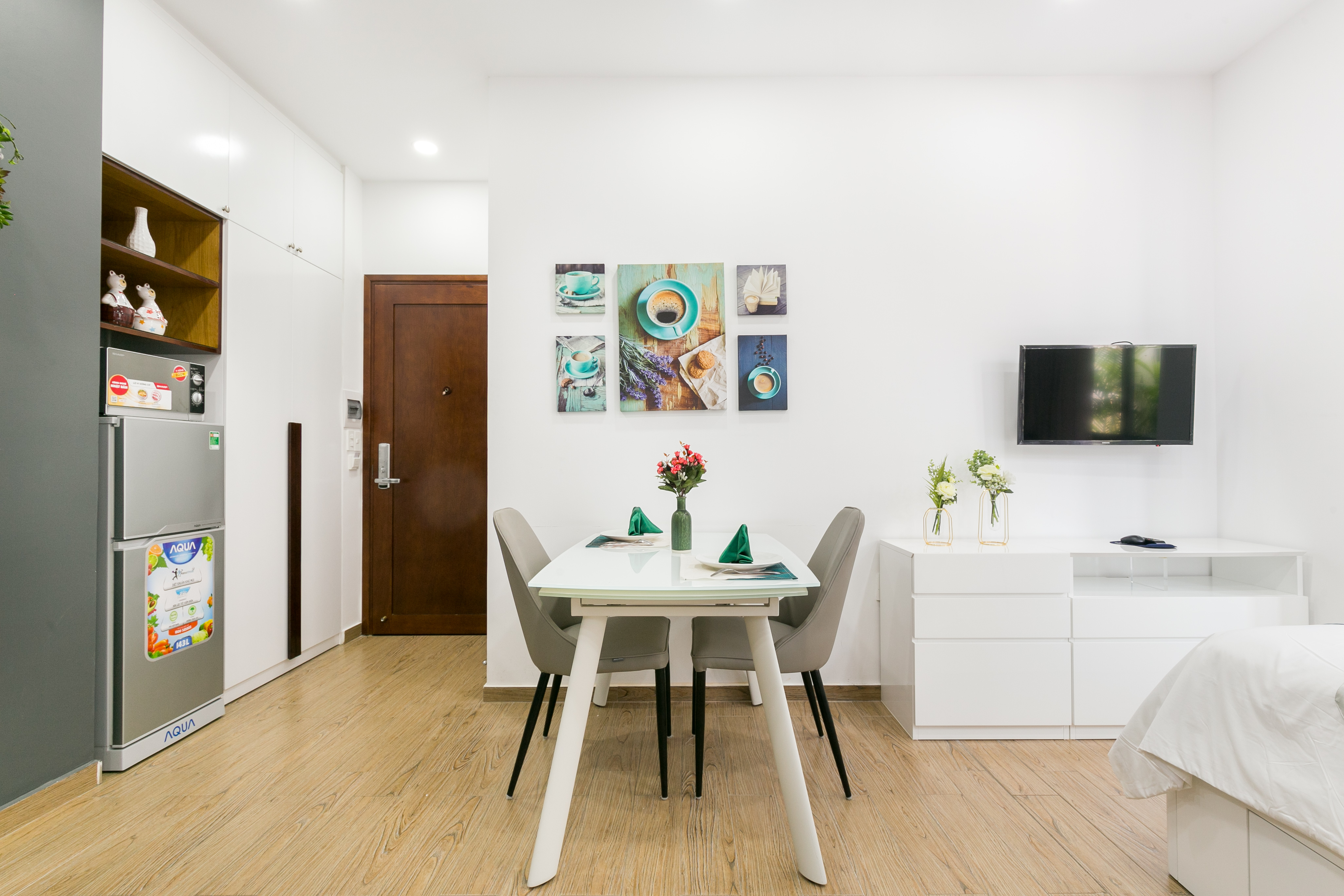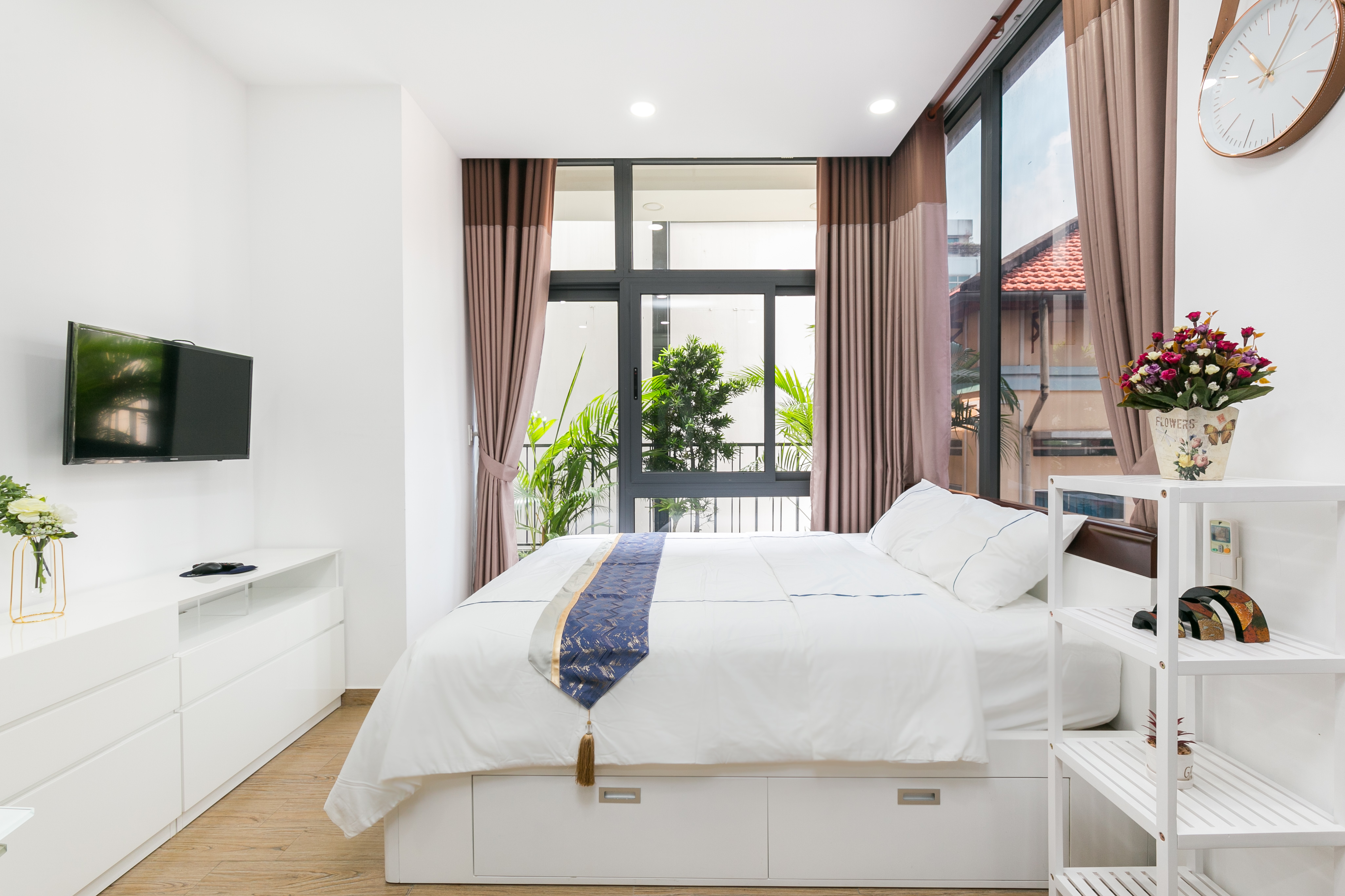 Each room has a balcony with green trees that create fresh air and natural bright. Here is a friendly environment where you can feel at home in a big busy city. Enjoy your time living in the building
