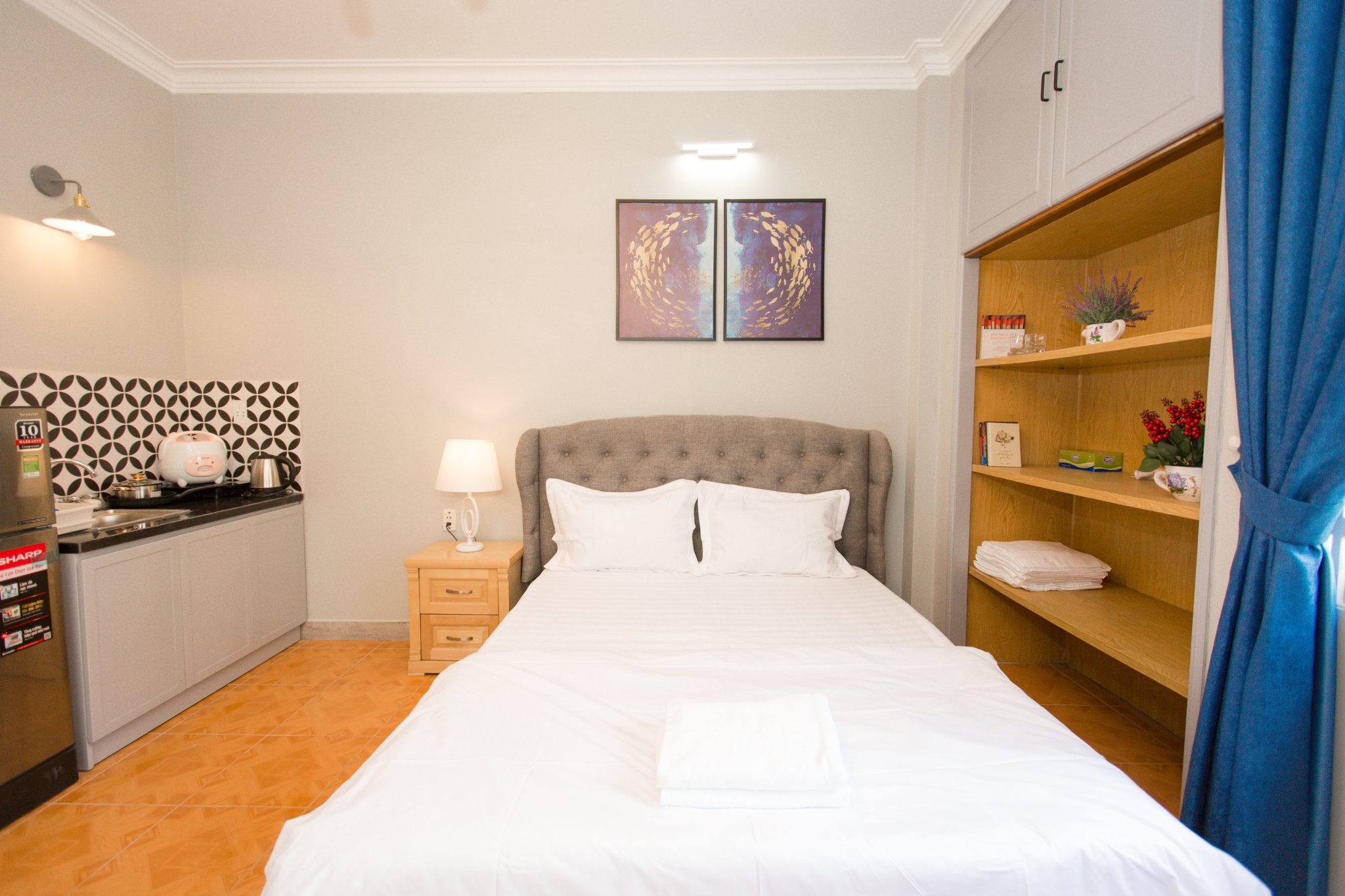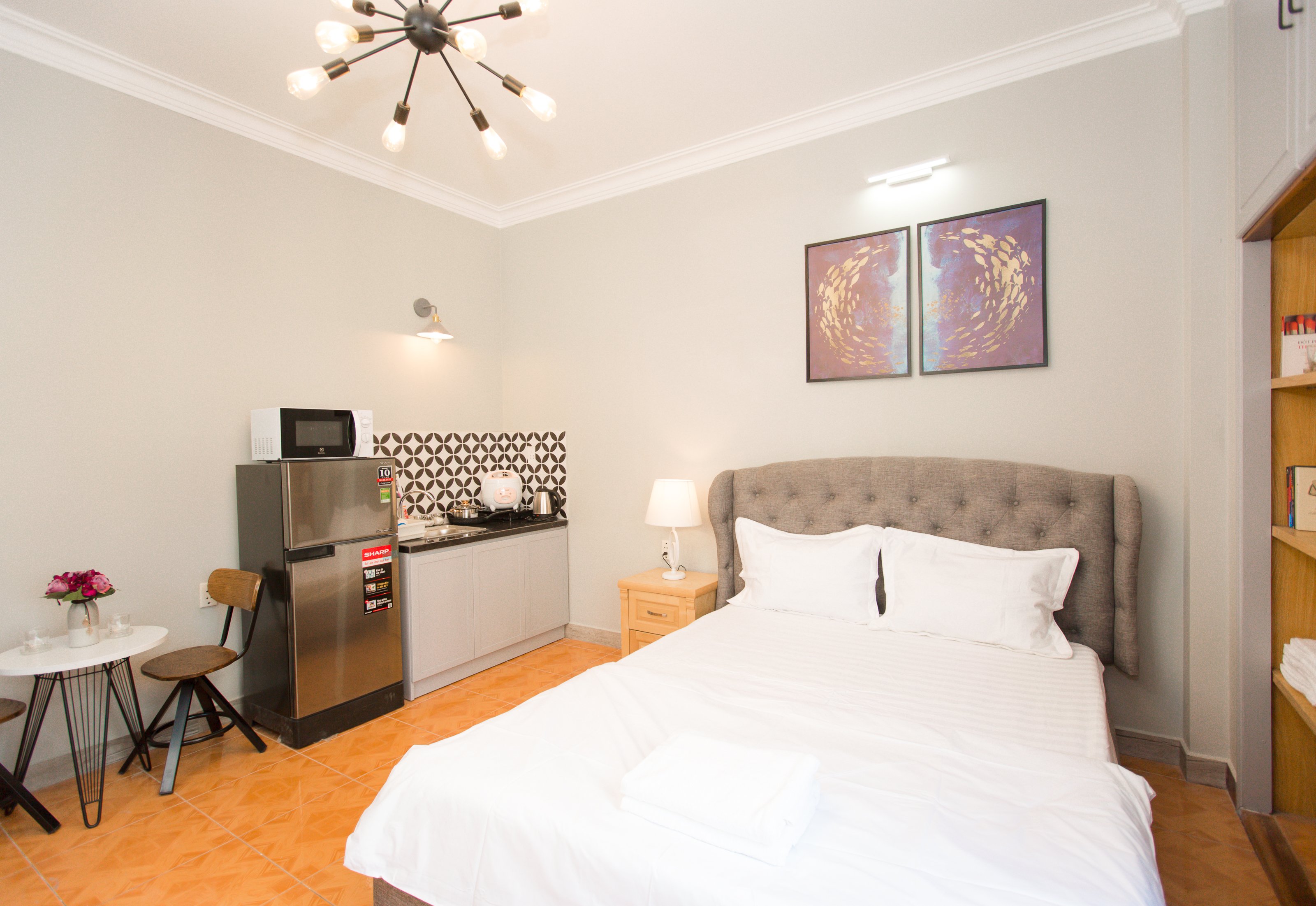 Area: 25m2. 3rd floor. Has its own kitchen. Private toilet. Fully equipped as the hotel only bring suitcases in. Cleaning, changing bed sheets once a week. Stair. Laundry area on the 4th floor.