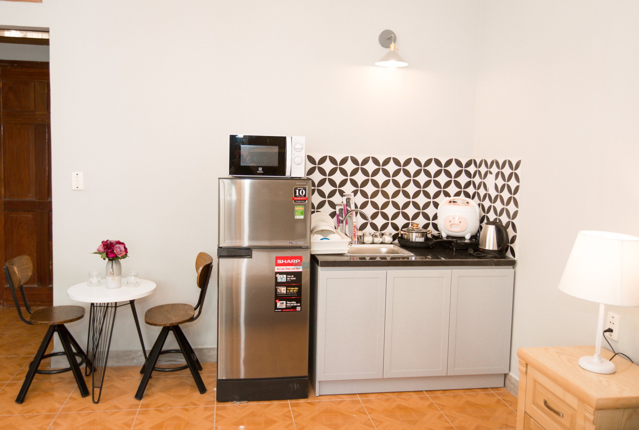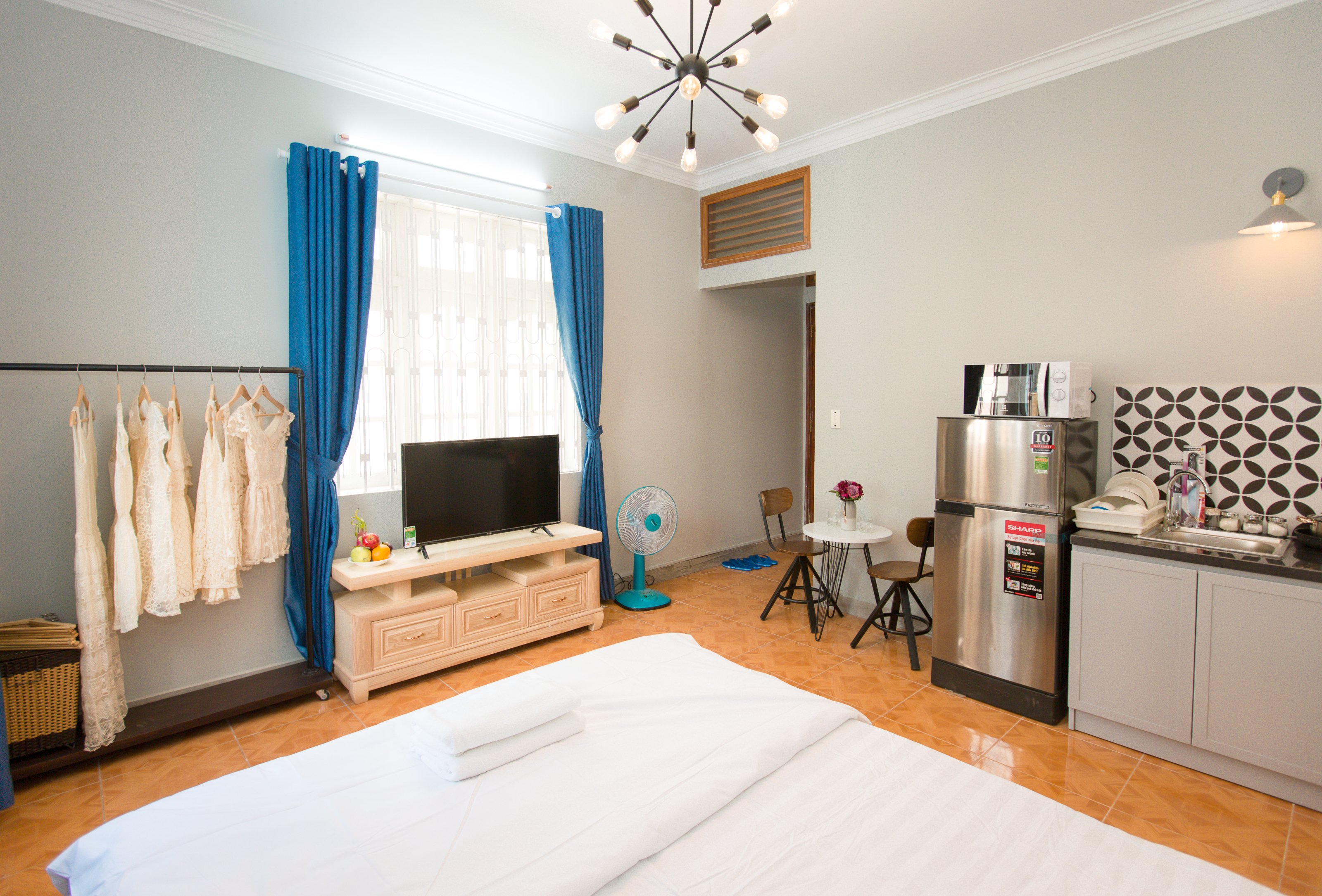 Free usage of water, free parking for 1 motorbike, Cleaning, change bed sheets once a week, wifi, Excluding Electricity bill 4000vnd/kwh.
