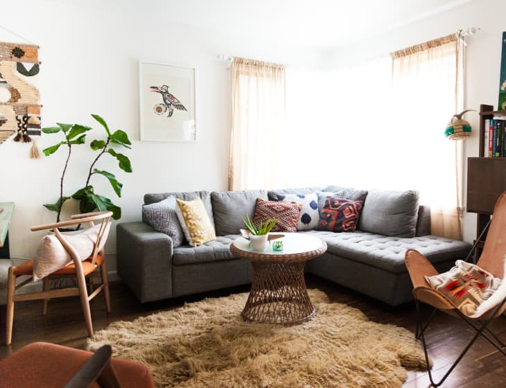 The patterns, textures, and layers in this Ohio duplex make for a beautifully boho room, but the addition of the black paint gives it a modern edge and a unique defining factor. Try adding wall paint in a saturated color to your living room to make your space feel like a fresh take on the bohemian look.